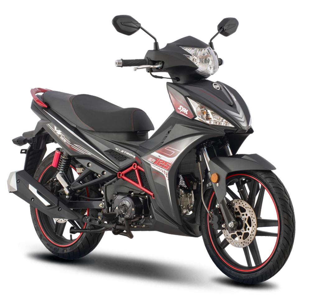 Επιφάνειες carbon look, δυναμικές γραμμές στο εσωτερικό της ποδιάς, επιθετικό πίσω τμήμα που καταλήγει σε μία αεροδυναμική αεροτομή, κάλυμμα εξάτμισης με επινικελωμένες λεπτομέρειες, σιρίτι στις ζάντες, εντυπωσιακό διακοσμητικό “πλαίσιο” χωροδικτύωμα κόκκινου χρώματος, φώτα ημέρας (DRL) LED και κομψό εξαγωνικό πίσω φωτιστικό σώμα LED, δείχνουν τον σπορ προσανατολισμό των σχεδιαστών της SYM.